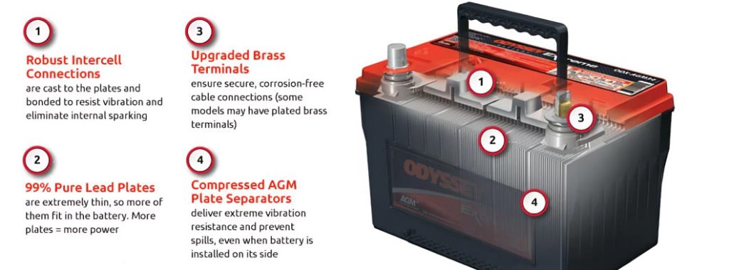 If these characteristics are important to you, keep reading to find out how the design of The ODYSSEY® Extreme Battery outperforms conventional budget batteries in: